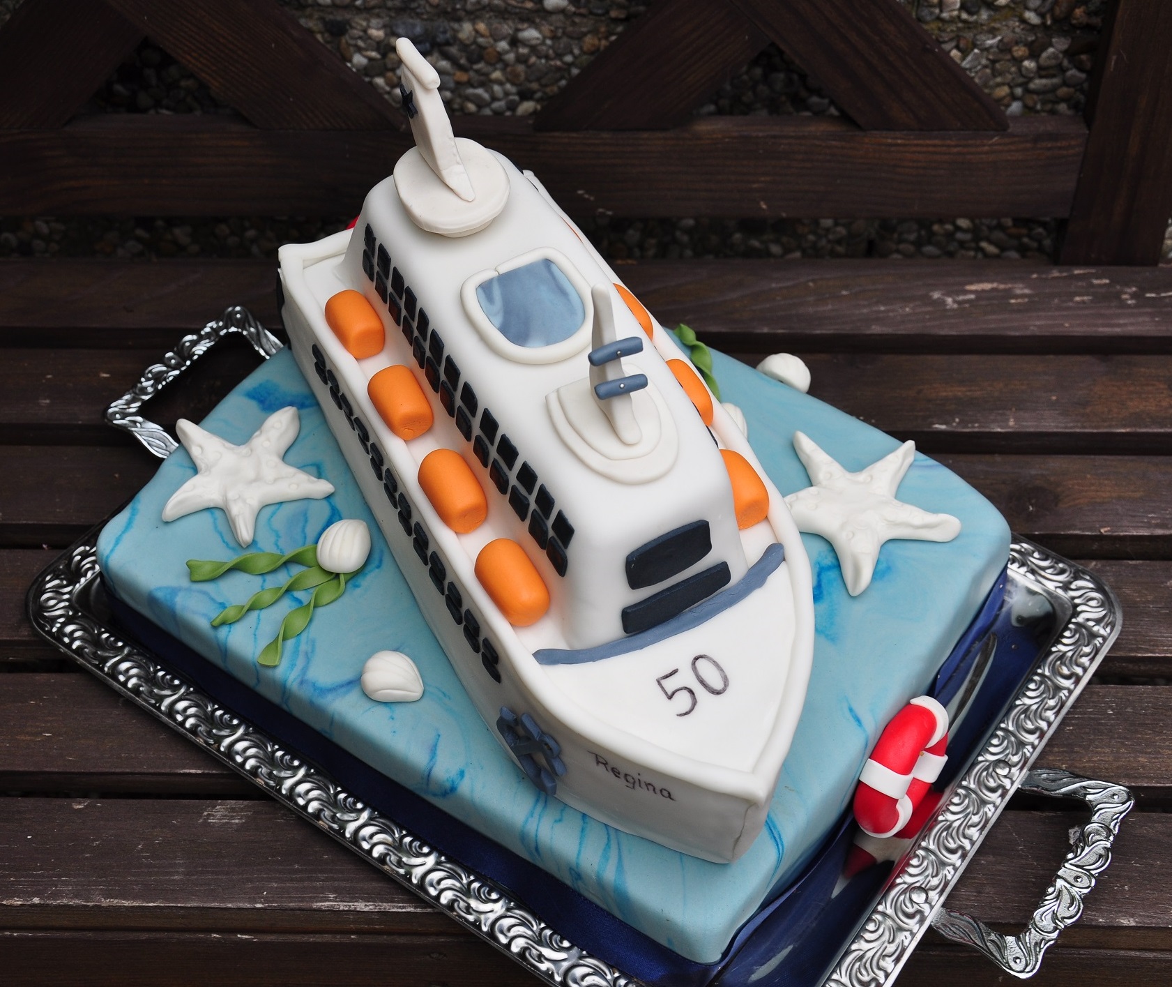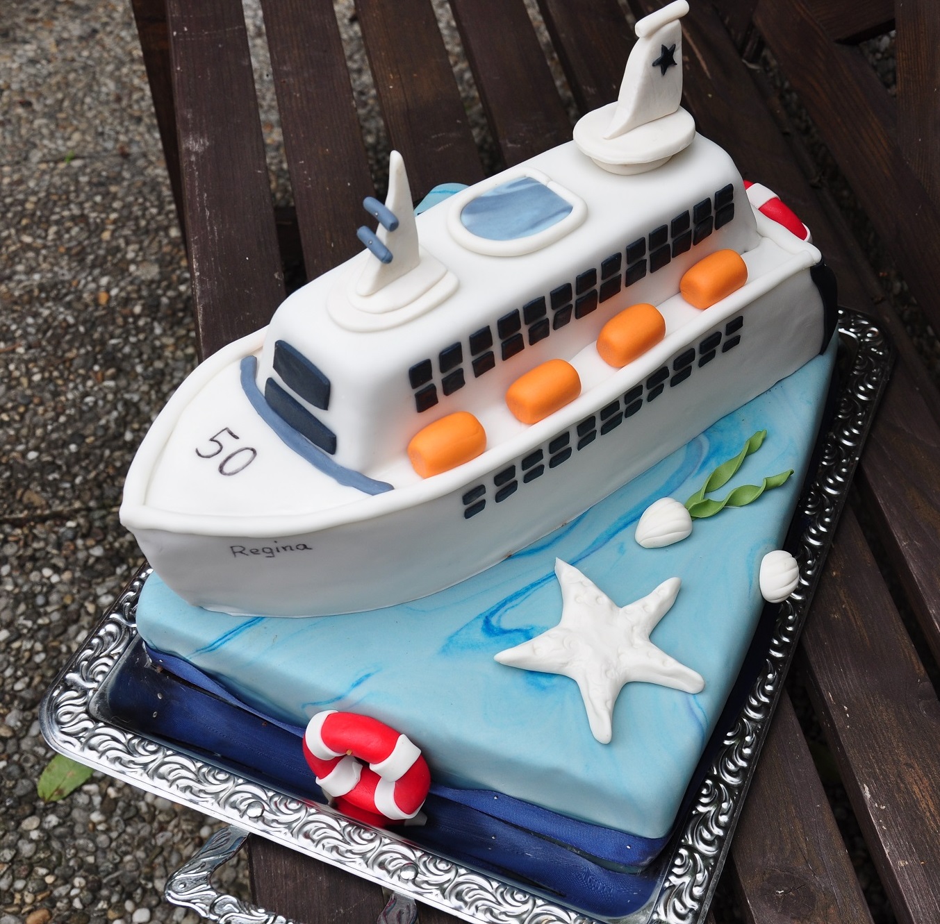 Vor ein paar Monaten haben wir die Einladung für eine Geburtstagsfeier erhalten. Das Geburtstagskind wünschte sich schon lange eine Kreuzfahrt und so lag natürlich der Gedanke nahe, eine Torte als Kreuzfahrtschiff zu backen.